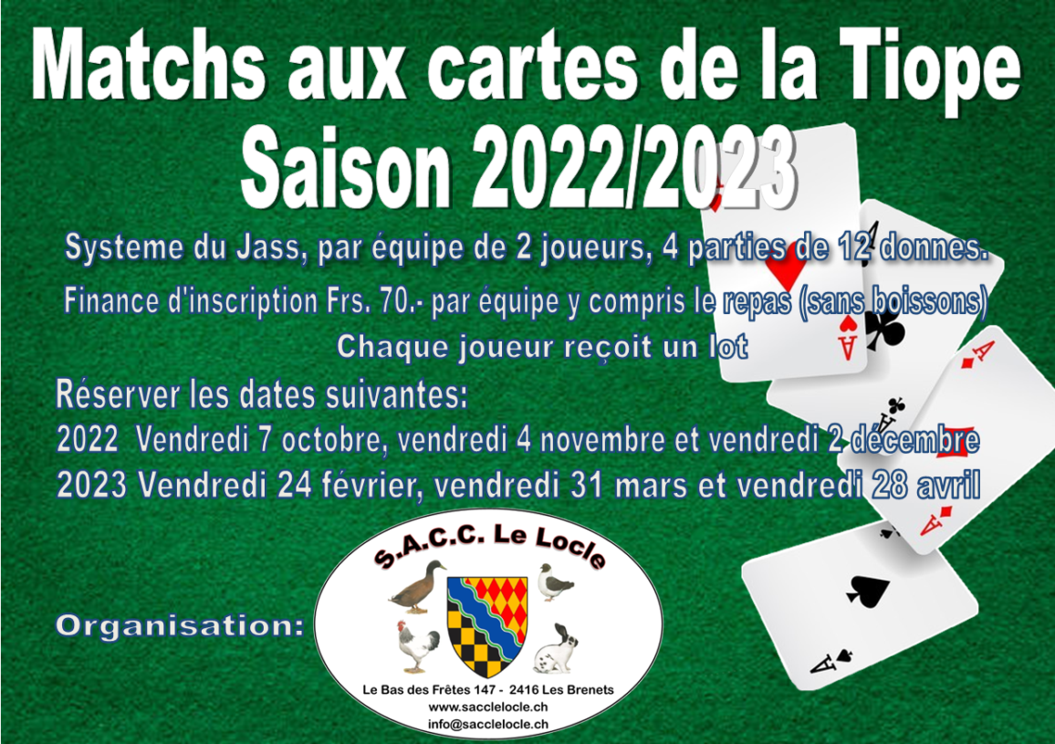 Depuis quelques années durant la période hivernale nous organisons des matchs aux cartes.